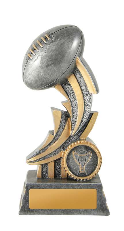 Great value modern look lightning bolt trophy perfect for Aussie Rules. Available in various sizes. Find the perfect trophy at Trophy Specialists in Perth!